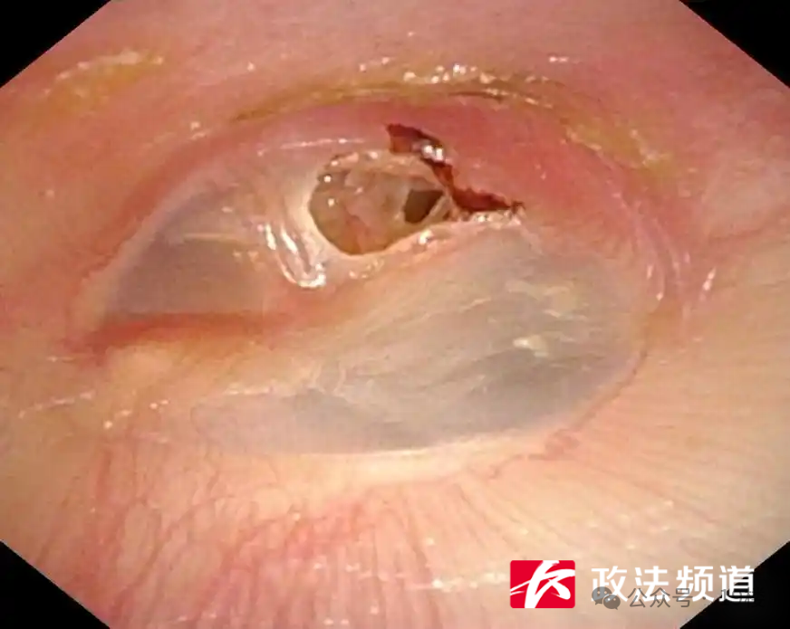 次日清晨,小雨右耳的闷胀感并未消失,还出现了间歇性嗡嗡耳鸣,类似耳朵进水后的不适。意识到情况不对,妈妈立即带小雨前往湖南省儿童医院就诊。该院耳鼻咽喉头颈外科主任医师吴雄辉在详细询问病史后,迅速为小雨安排了耳纤维内镜检查,结果显示:小雨右侧鼓膜表面轻度充血,紧张部前下象限存在明确穿孔。