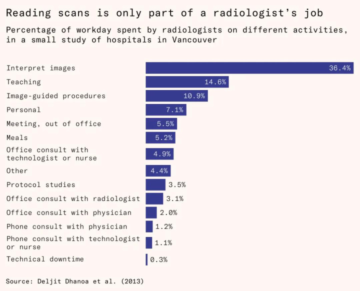 医生仅用36%的时间处理影像本身,更多时间用于监督检查过程、与临床医生和患者沟通、教学以及调整扫描方案。